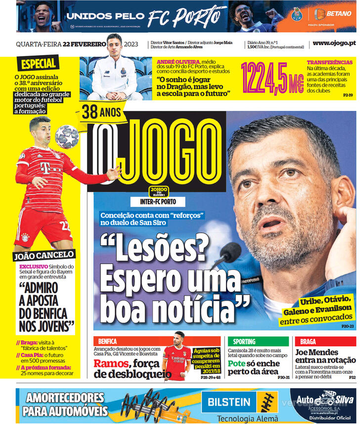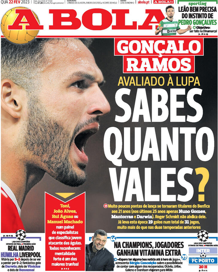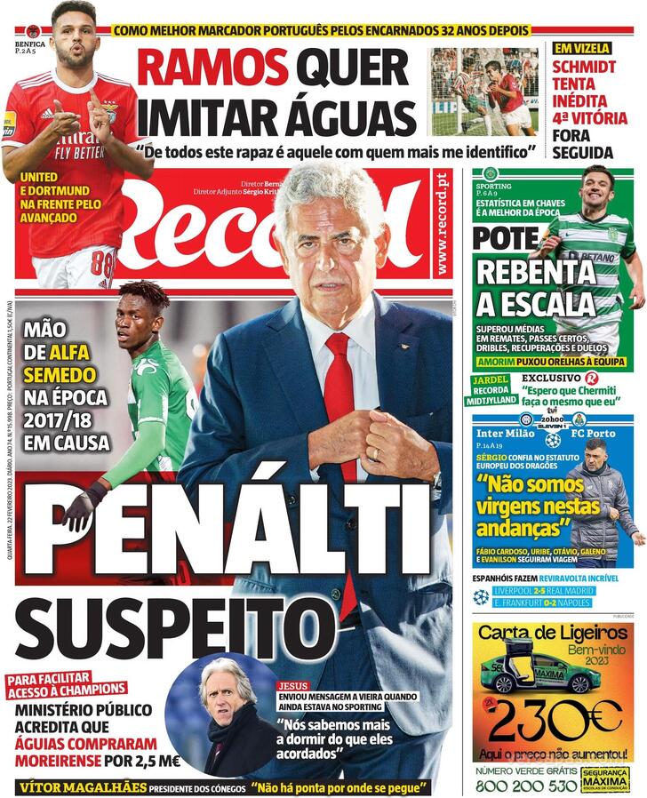 Estas são as capas dos jornais desportivos de 22 de Fevereiro de 2023.