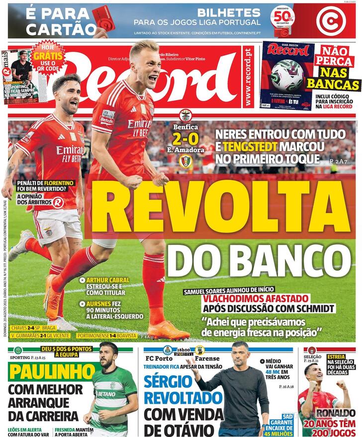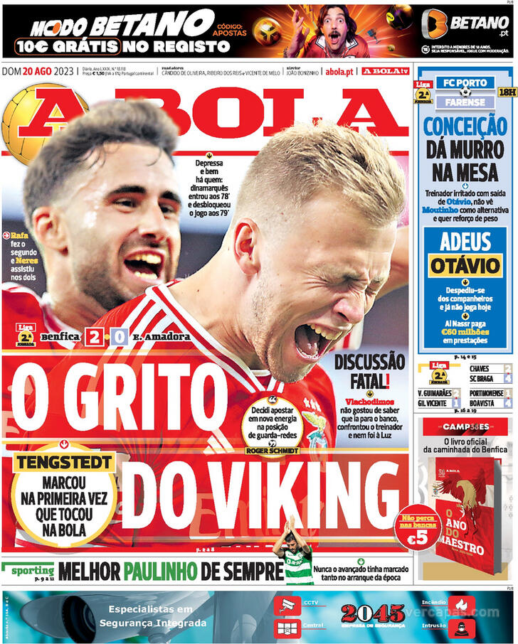 Estas são as capas dos jornais desportivos de 20 de Agosto de 2023.