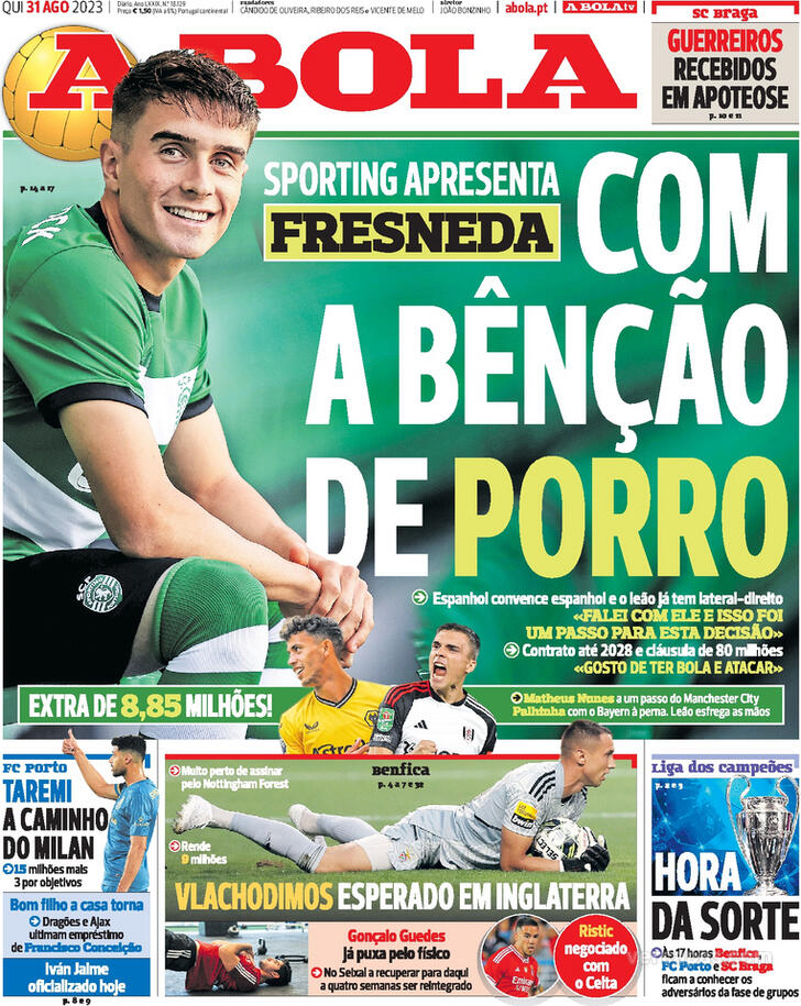 Estas são as capas dos jornais desportivos de 31 de Agosto de 2023.
