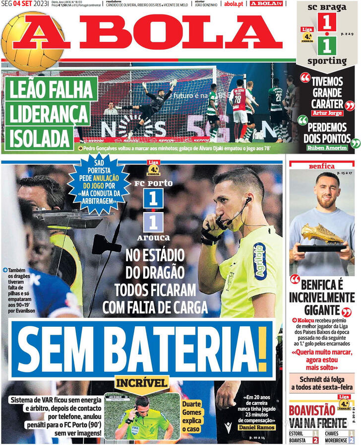 Estas são as capas dos jornais desportivos de 04 de Setembro de 2023.