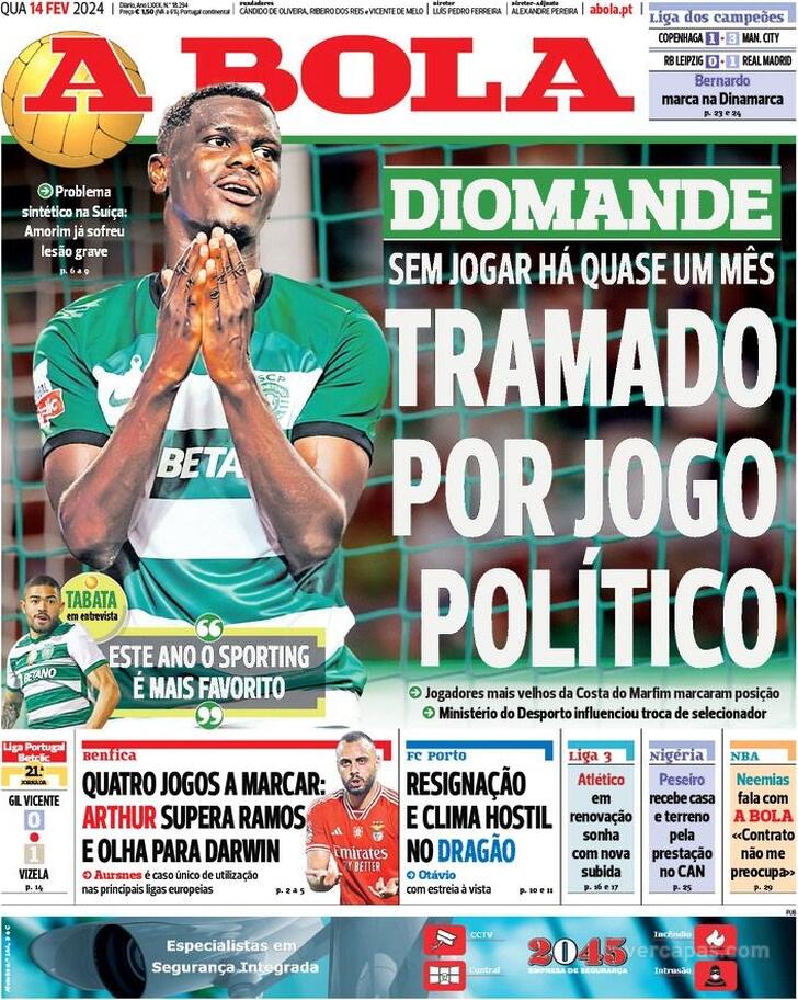 Estas são as capas dos jornais desportivos de 14 de Fevereiro de 2024.