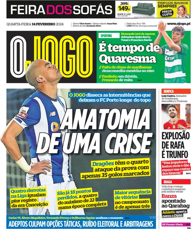 Capas Jornais Desportivos 14-02-2024