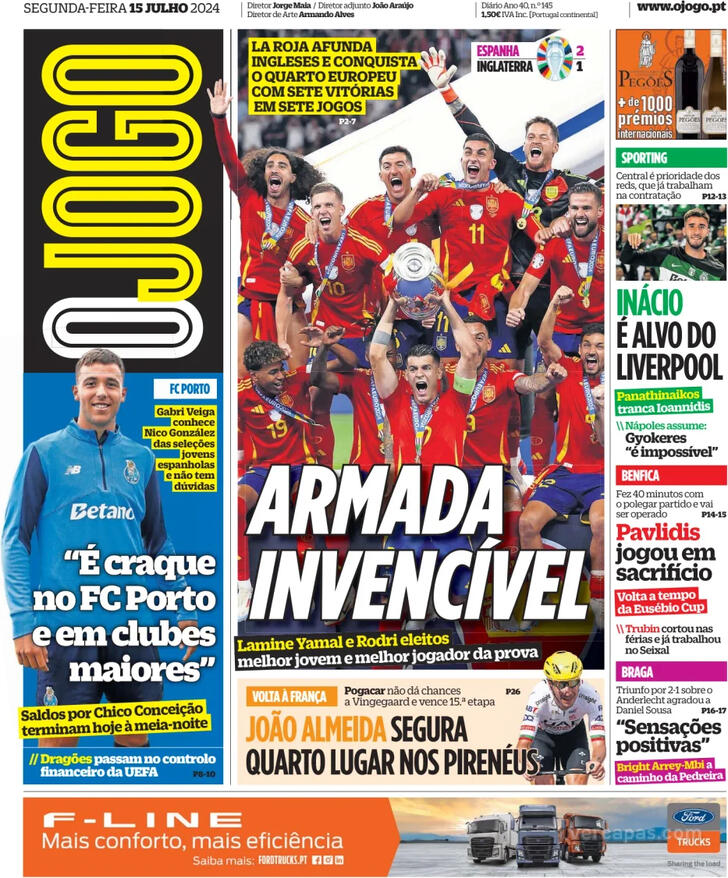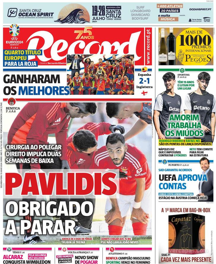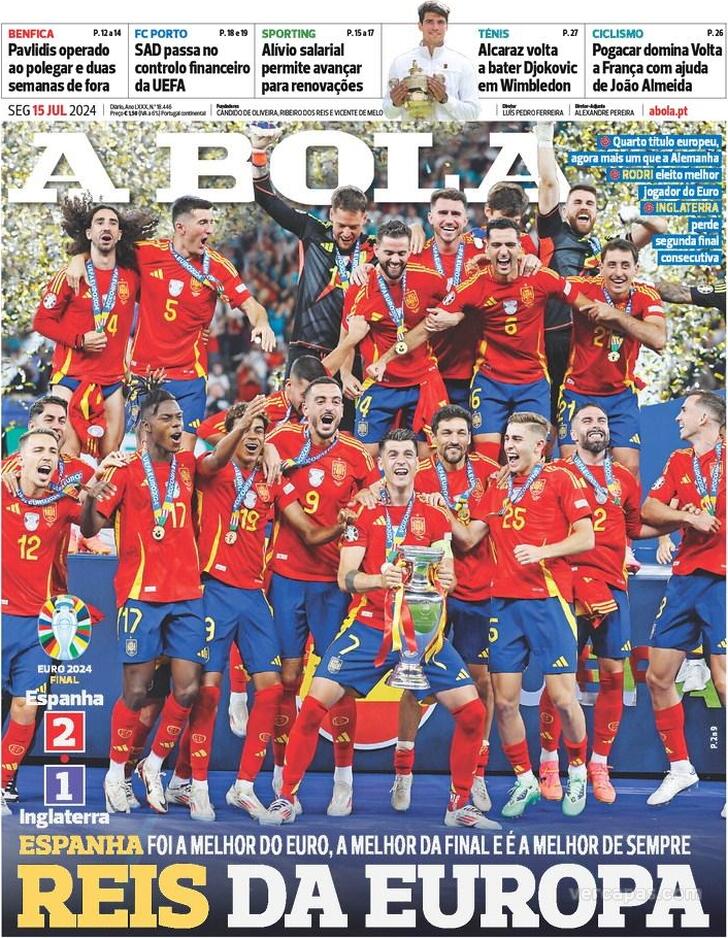 Estas são as capas dos jornais desportivos de 15 de Julho de 2024.