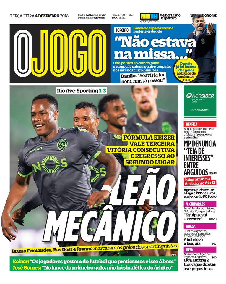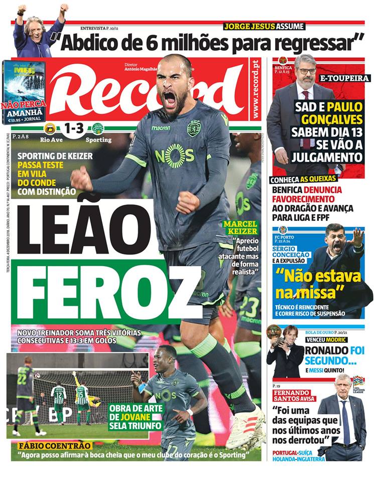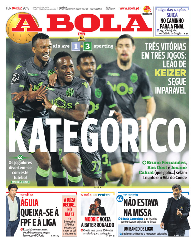 Capas dos jornais desportivos 04-12-2018