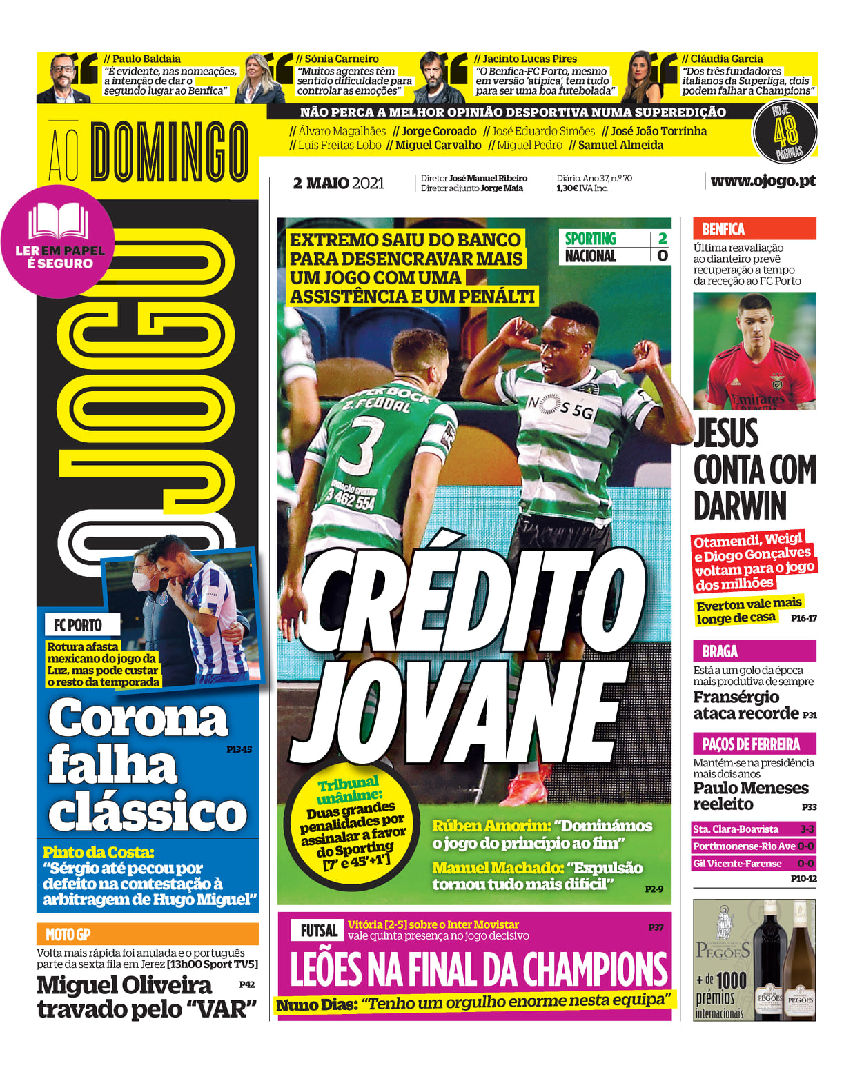 Estas são as capas dos jornais desportivos de 02-05-2021: