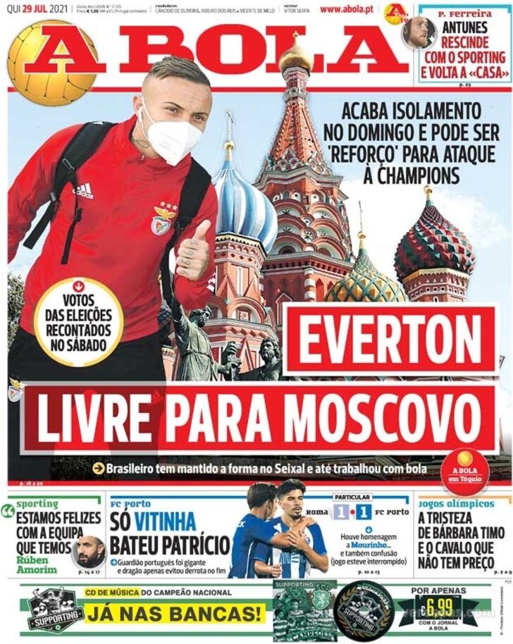 Estas são as capas dos jornais desportivos de 29 de Julho de 2021.