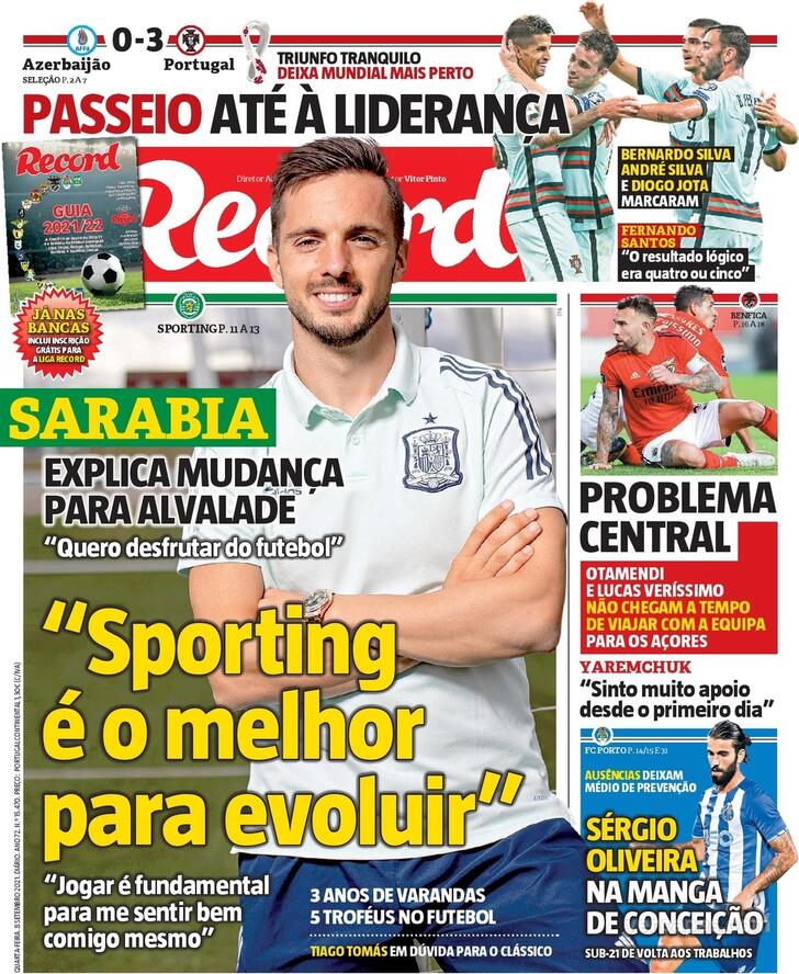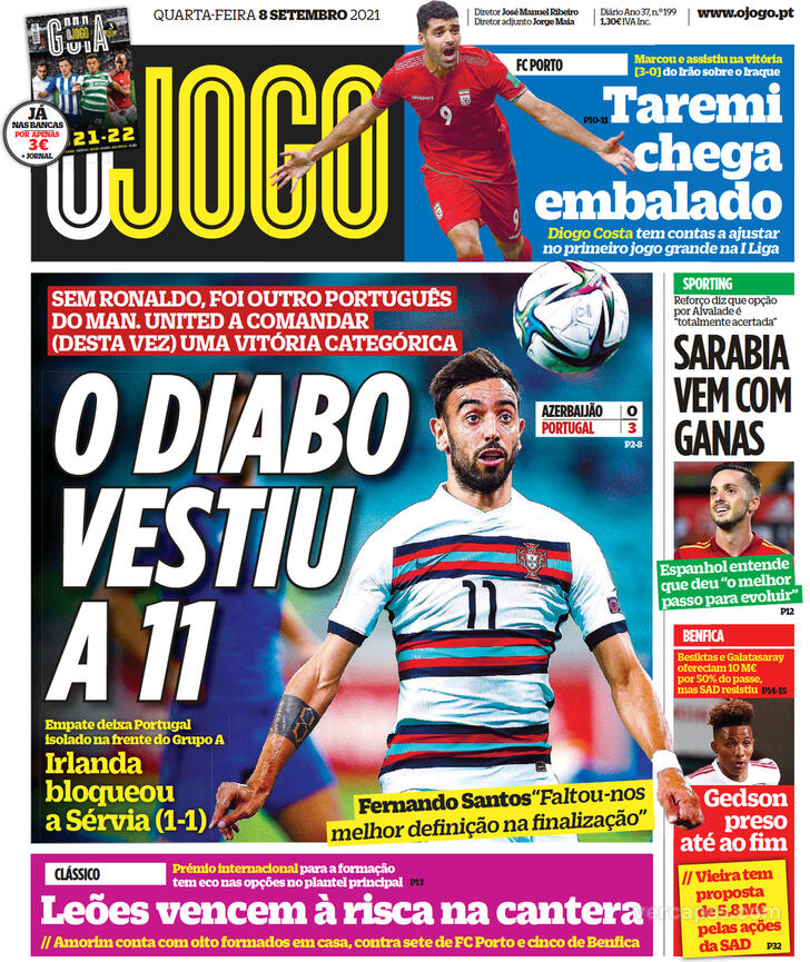 Estas são as capas dos jornais desportivos de 08 de Setembro de 2021.