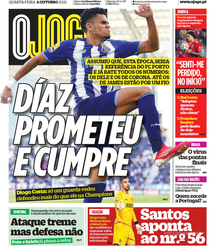 Estas são as capas dos jornais desportivos de 06 de Outubro 2021.