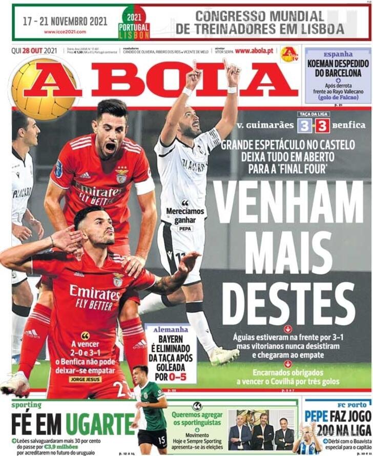Estas são as capas dos jornais desportivos de 28 de Outubro de 2021.