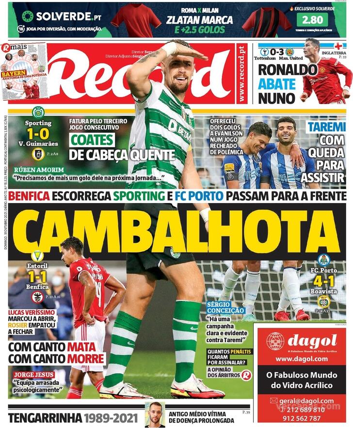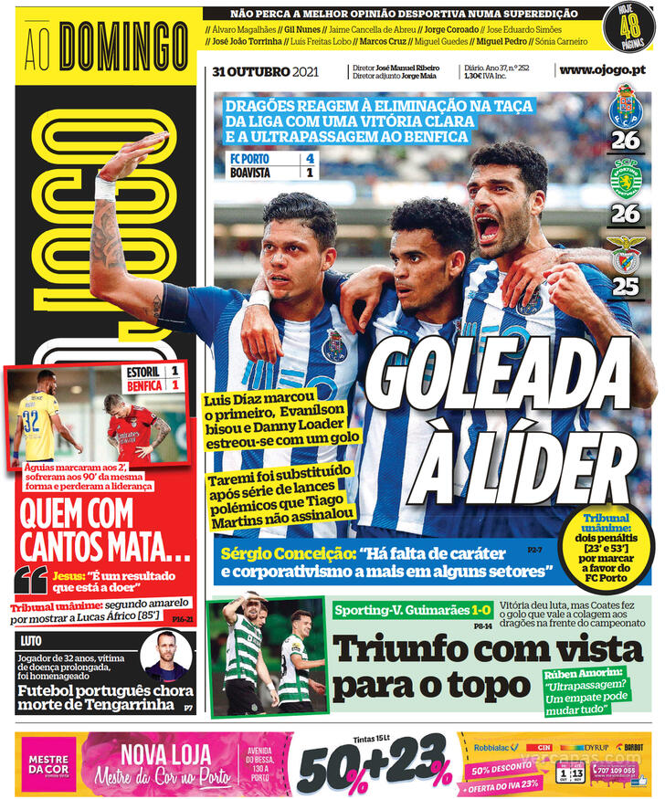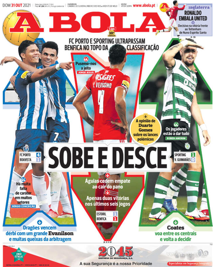 Estas são as capas dos jornais desportivos de 31 de Outubro de 2021.